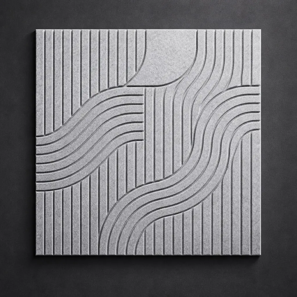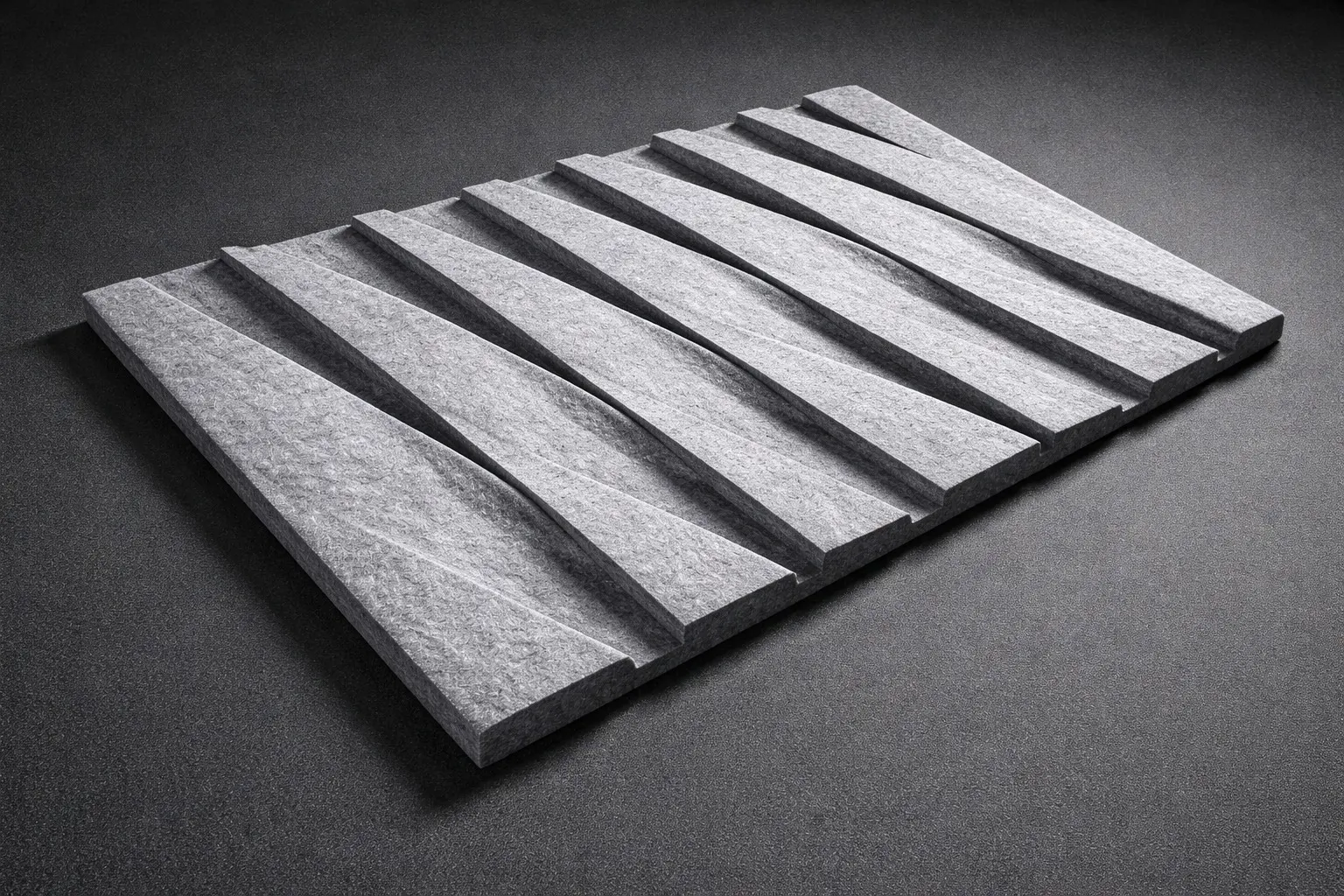 Nuestros paneles acústicos mecanizados ofrecen un alto nivel de precisión, permitiendo crear geometrías, relieves y patrones exclusivos. Esta versatilidad convierte a ECOPET® en una solución ideal para revestimientos murales, techos técnicos, separadores acústicos, elementos decorativos y piezas especiales a medida.
